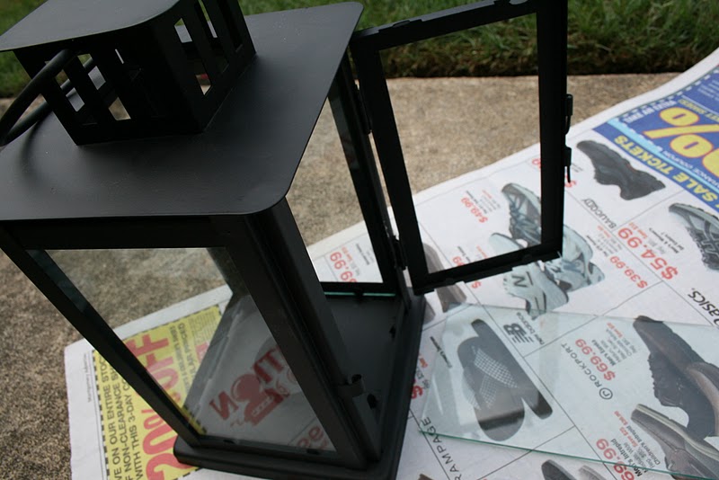 When the paint was dry, I put the the glass back in the lantern.